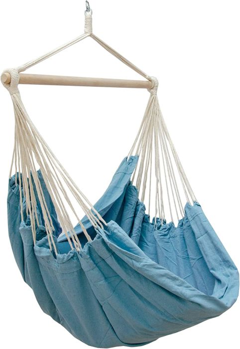 Daarom is onze luxe hangstoel ook uitgerust met een gigantisch stoffen oppervlak - zelfs grote volwassenen kunnen zich hier volledig uitrekken.