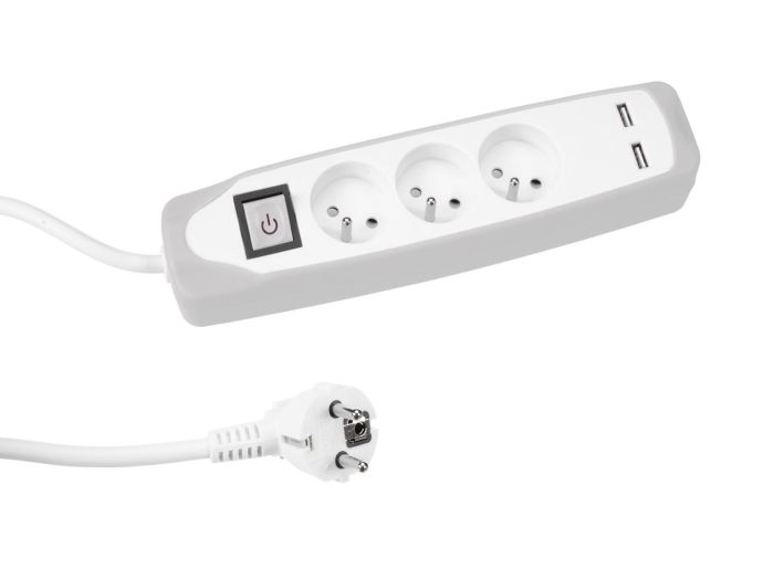 3-VOUDIGE STEKKERDOOS MET SCHAKELAAR - 2 USB-POORTEN - GRIJS/W