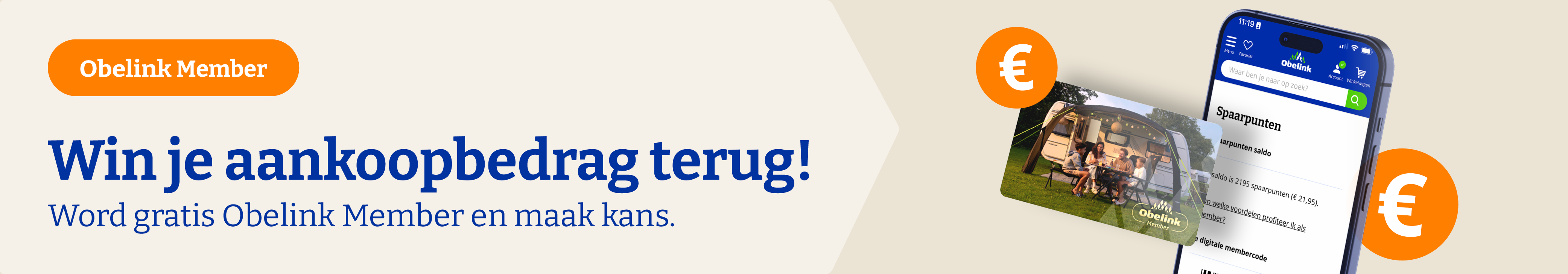 - Je moet het product in de periode 1 oktober 2025 t/m 31 december 2025 gekocht hebben via obelink.nl of in onze megastore in Winterswijk met een geregistreerde membercard en met datzelfde e-mailadres geabonneerd zijn op de Obelink nieuwsbrief.