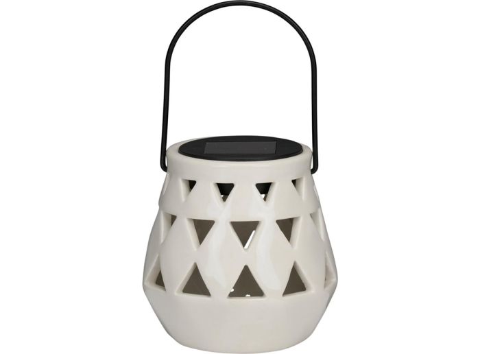 De Arti Casa keramieken solar lantaarn is een stijlvolle tafellamp die zichzelf oplaadt met zonne-energie en sfeervol licht geeft bij je tent of caravan.