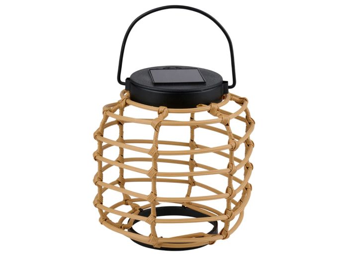 Hij werkt op zonne-energie en schakelt vanzelf in zodra het begint te schemeren. De behuizing is gemaakt van kunststof met bamboe look en geeft warmwit licht dat je zithoek ’s avonds extra gezellig maakt.