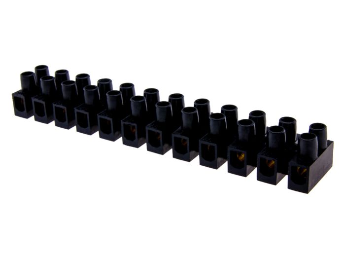 De kroonsteenstrip 12-polig in de kleur zwart is om twee of meer elektriciteitsdraden met elkaar te verbinden. De kroonsteen bestaat uit een blokje kunststof isolatiemateriaal waarin messing buisjes zitten met aan weerszijden een messing boutje. In de beide uiteinden kan een draad worden gestoken die onder het boutje wordt geklemd, zodat beide draden via het buisje elektrisch met elkaar verbonden zijn.