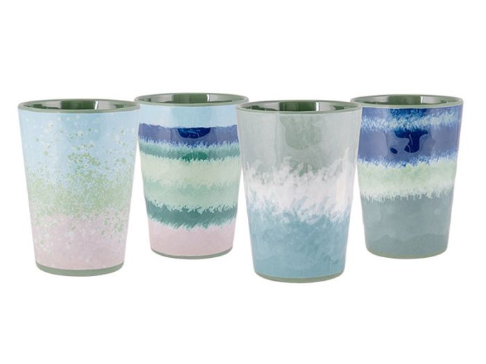 De set bestaat uit vier lichtgewicht bekers, gemaakt van 100% melamine – een materiaal dat vrijwel onbreekbaar, kraswerend en BPA-vrij is. Ze zijn geschikt tot 85 graden, vaatwasmachinebestendig en volledig food approved. Perfect voor dagelijks gebruik en gemakkelijk mee te nemen.