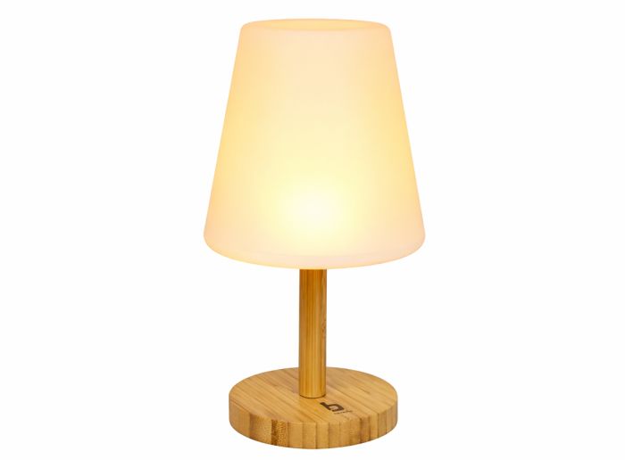 De Bo-Camp Urban Outdoor Cambridge tafellamp is een klassieke lamp die is voorzien van een stijlvolle bamboe voet.