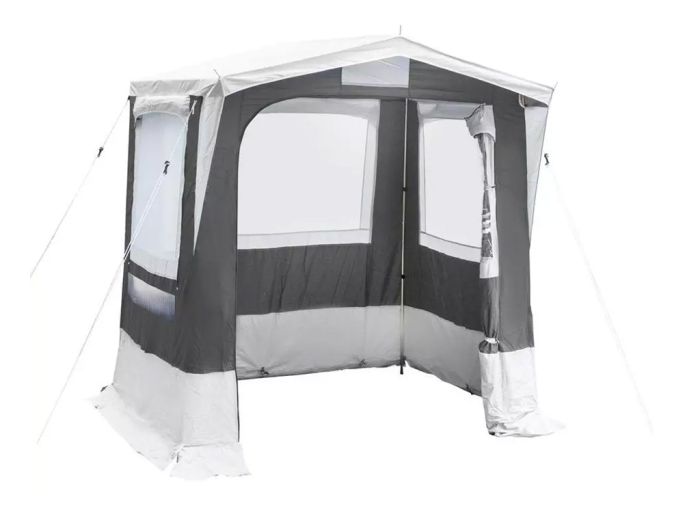 Een vrijstaande tent kan ook zonder camper of bus blijven staan. Dit is vooral handig wanneer je op pad gaat, maar de tent niet wilt afbreken.