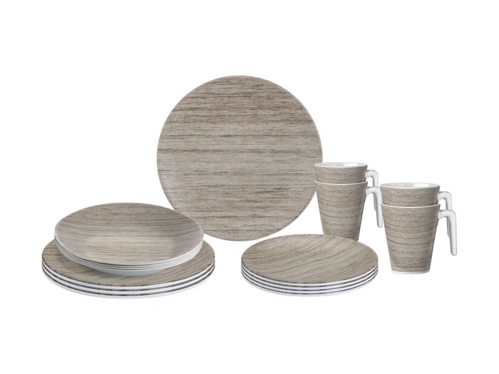 Dit complete serviesset is gemaakt van hoogwaardig melamine, lichtgewicht en schokbestendig.