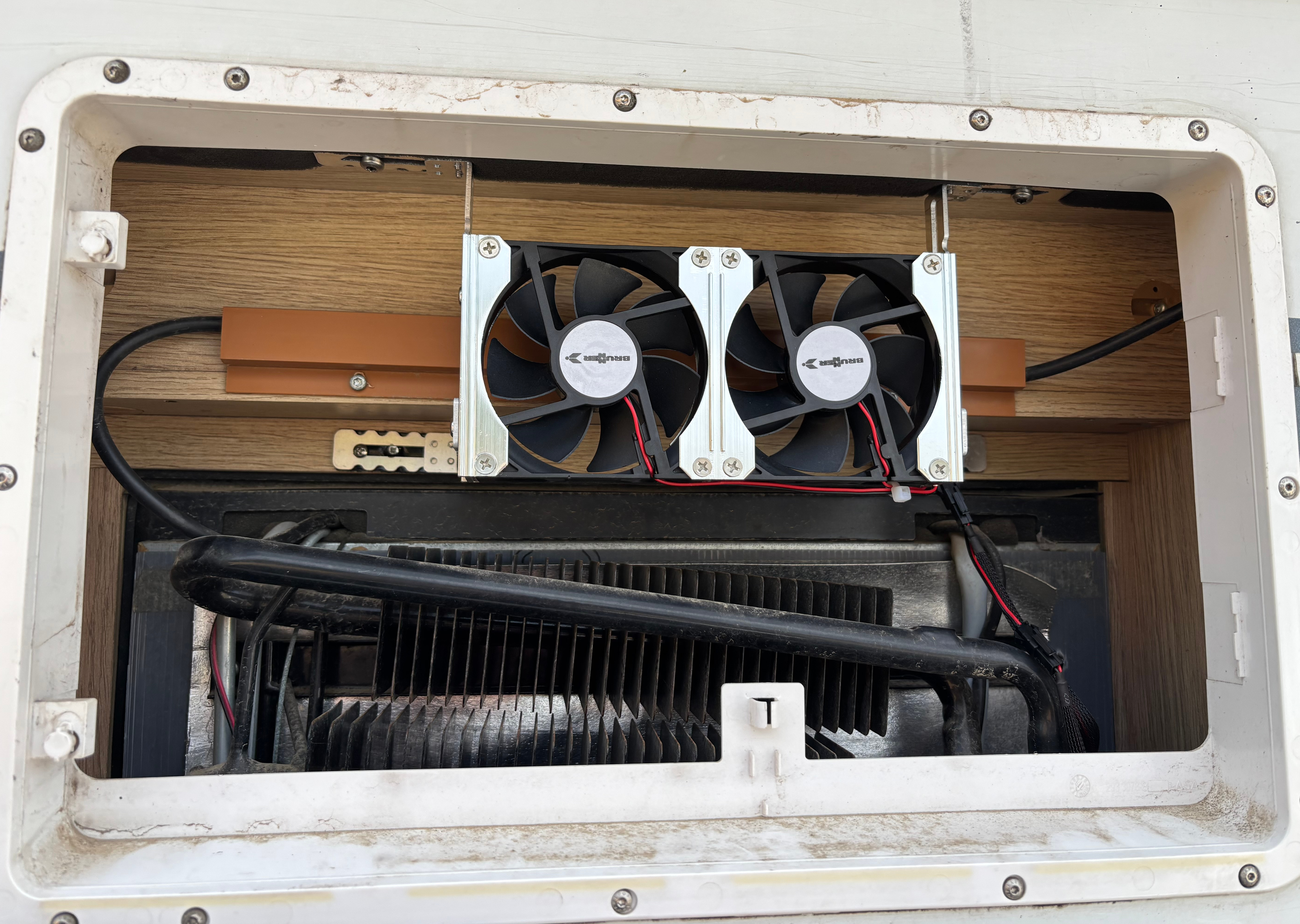 - goed uitgedachte constructieTop product. de grootste uitdaging was voor ons de plek. hij paste niet tussen de roosters product is namelijk 3 cm breed en de ruimte tussen het rooster was in ons geval 2.5 cm. wij hebben een houten blokje gemaakt. sleufje erin gefreesd zodat hij in het rooster valt en daarop de ventilator gemonteerd. de grootste uitdaging was nog om 12v achter de koelkast te krijgen zonder scotch klemmetjes oid te gebruiken. enige wat ik mis is een zwevende zekering, die heb ik separaat aangeschaft en er tussen gezet. mocht er ooit een draadje sluiting gaan maken dan fikt m'n caravan niet af. ik begrijp niet goed wat mensen met een handleiding willen, stekkers passen maar op 1 manier en de functies zijn dusdanig eenvoudig daar kun je toch ook geen discussie over voeren. geweldig dat het aluminium bedieningskastje met klittenband ergens gemonteerd kan worden, wij hebben hem verstopt achter de bovenste lade in de keuken, uit het zicht maar toch nog makkelijk bedienbaar. over 4 weken eens ervaren of het kleine beetje geluid dat de ventilator hinderlijk is, al hebben we in de nacht de ventilator ook altijd al aanstaan, dus ik verwacht dat die meer geluid maakt dan die kleine ventilatortjes