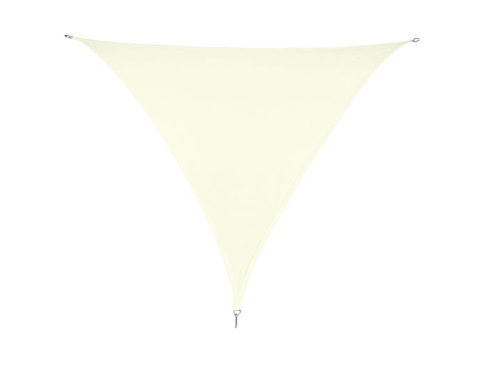 Houd bij het strak ophangen van een Buitenkado schaduwdoek altijd rekening met extra benodigde ruimte van ongeveer 10% (met een minimum van 30cm). Het driehoekige crème wit kleurige schaduwdoek is weerbestendig, schimmelwerend en daarbij lucht- en waterdoorlatend. Je kan hem daarom ook het hele seizoen laten hangen!