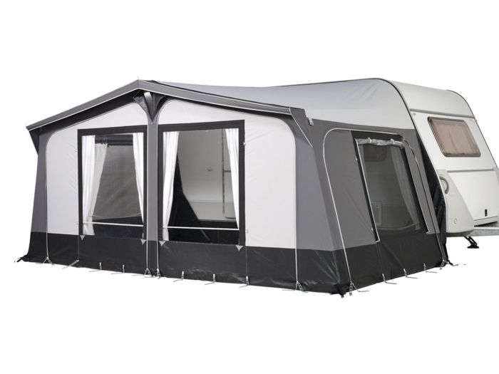 Het naadloze dak van de voortent is gemaakt van Mehler Airtex 240, een sterk geweven, waterdichte polyester stof van Duits fabricaat, waarmee een hoogwaardige kwaliteit en een lange levensduur wordt gegarandeerd.