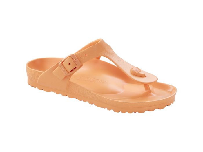 De BIRKENSTOCK Gizeh is een tijdloze klassieker, opnieuw geïnterpreteerd in lichtgewicht en flexibel EVA. Dit hoogwaardige synthetische materiaal is licht, elastisch, waterdicht, reukloos en huidvriendelijk, biedt het gebruikelijke BIRKENSTOCK-comfort en is getest op schadelijke stoffen. Een perfecte metgezel voor alle gelegenheden!
