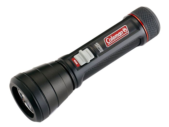 Coleman Batteryguard Handlamp in zwart Productdetails Handlamp Festival Collection ideaal voor camping, festival, tuin en natuurgebruik Weerbestendige, robuuste lampbehuizing op batterijen (3 x AAA, inbegrepen) handige aan/uit schakelaar aan de bovenkant met BatteryLock systeem BatteryLock voorkomt voortijdige ontlading van de batterij wanneer deze niet wordt gebruikt door de contacten te verbreken via de bediening van de uit-schakelaar, de batterij wordt automatisch van het circuit gehaald Technische gegevens Afmetingen (HxB): 14,5 x 3 cm Batterijsysteem: 3x AAA Beschermingsniveau IPX 4: beschermd tegen vaste vreemde voorwerpen met/tegen toegang met een draad Lichtopbrengst: 325 lumen Brandduur: 1 u Lichtbereik: 250 m Lichtopbrengst: 4 lumen Brandduur: 200 u Lichtbereik: 25 m