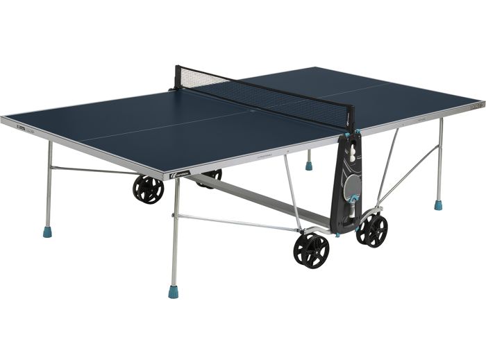 De Cornilleau 100X outdoor tafeltennistafel, compact, handzaam, veilig, wendbaar en duurzaam! De 100X outdoor heeft de kwaliteit die je van een Cornilleau tafeltennistafel mag verwachten voor een aantrekkelijk prijs. Met zijn 4 mm dikke speeloppervlak van harslaminaat biedt de 100X tafeltennistafel een goede rebound die perfect is voor dagelijks gebruik en om te genieten van een potje tafeltennis met vrienden of familie. Het speelveld van de Cornilleau 100X outdoor tafeltennistafel heeft een Softmat-afwerking, zodat je niet verblind wordt door de zon. De Cornilleau 100X outdoor tafeltennistafel is gemaakt van duurzame materialen en is weer- en schokbestendig. Het 40 mm hoge frame garandeert een stevige grip op het speelveld, waardoor deze mooi vlak blijft. De Cornilleau 100X tafeltennistafel outdoor beschikt over stabiele poten met een eenvoudig mechanisme om ongelijke grond te compenseren. Door het Cornilleau Compact Technology vouwsysteem raakt de tafeltennistafel opgeklapt minder snel uit balans, het voorkomt dat kinderen in de opbergstand tussen de panelen kruipen en maakt het openen en sluiten van de 100X tafeltennistafel makkelijker. Het eenvoudig te bedienen vergrendelsysteem, met 8 vergrendelpunten, zorgt ervoor dat panelen perfect horizontaal blijven in de speelpositie en perfect verticaal in de opslagpositie. Met de extra grote dubbele wielen verplaats je de Cornilleau 100X outdoor tafeltennistafel makkelijk, zelfs ove obstakels en over ruw terrein.