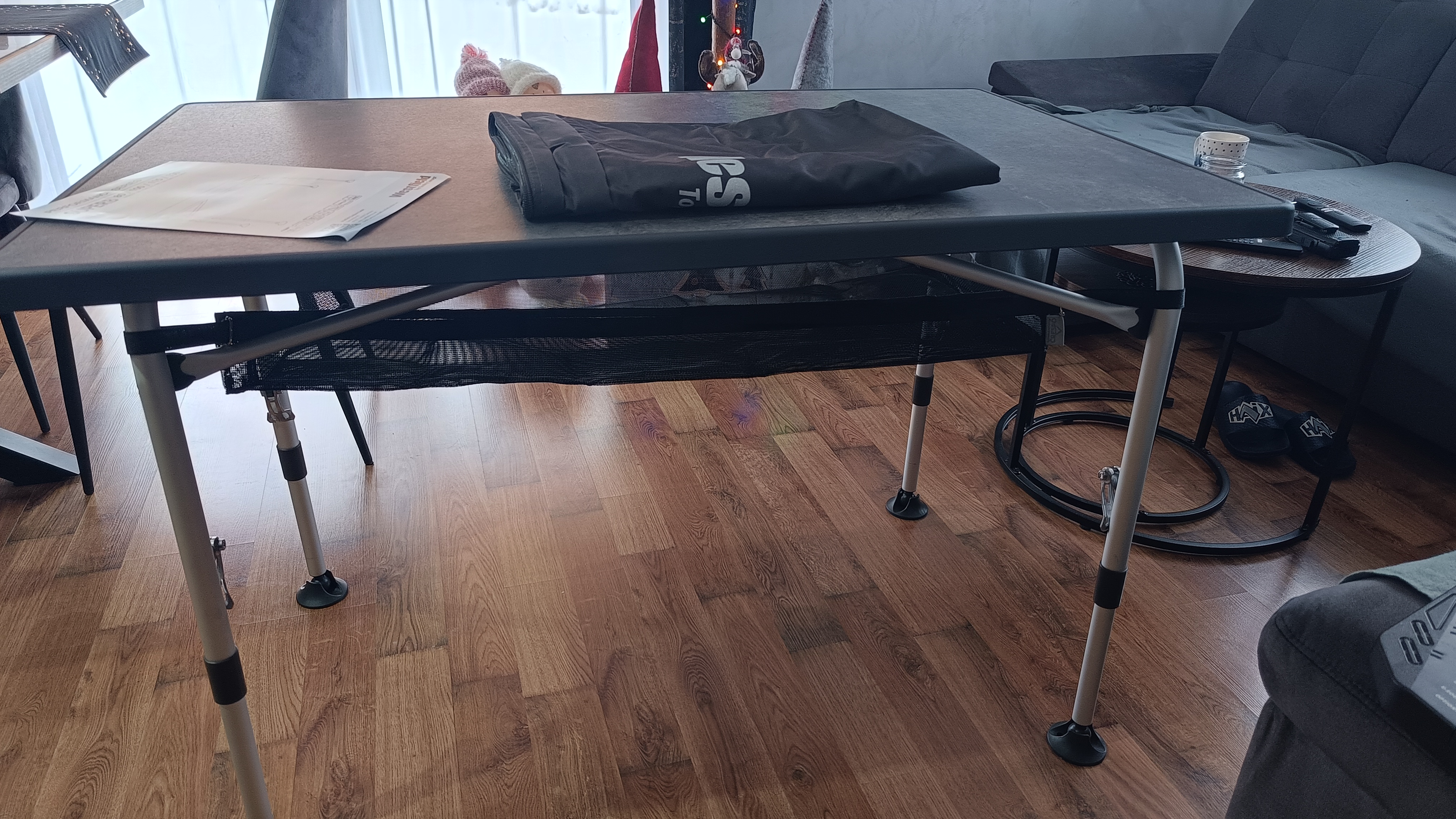 Het opbergnet kun je eenvoudig onder een klaptafel bevestigen door middel van klittenband. Het opbergnet is gemaakt voor de Crespo 352 en 272 tafels, maar is uiteraard ook goed te gebruiken voor andere tafels. Let wel even op het formaat van je tafelblad. Deze moet iets groter zijn dan 85 x 47 cm.