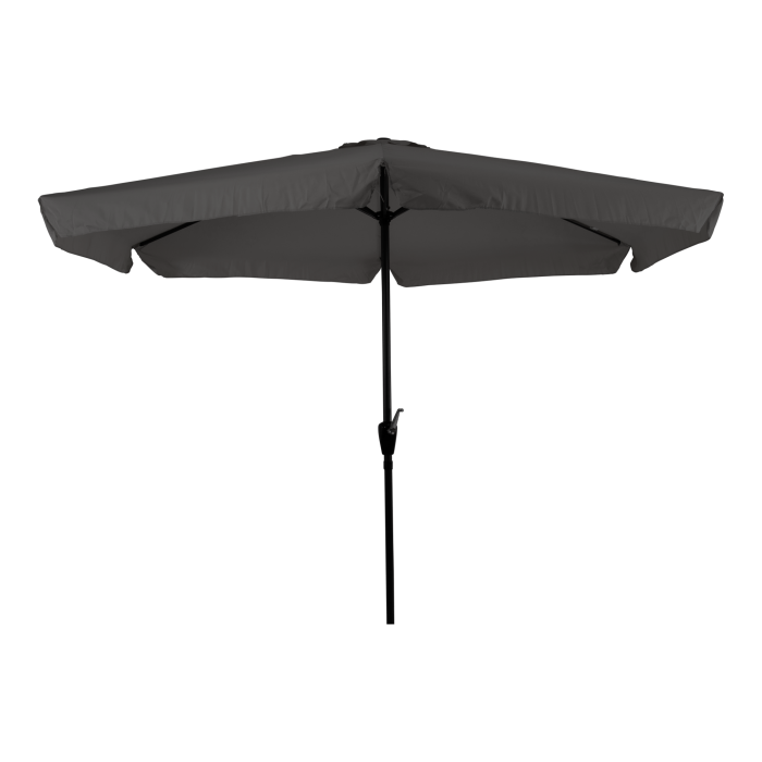 In het zonnetje zitten of liggen is heerlijk, maar voor de afwisseling creëer je met een parasol een aangename schaduw in je tuin. Deze prachtige Outdoor Living Gemini stokparasol is vervaardigd uit de beste materialen en geeft direct sfeer. De robuuste parasol is verkrijgbaar in 3 kleuren en sluit daarom perfect aan bij je tuininrichting. De parasol heeft een ronde vorm (zeshoek) met 6 metalen baleinen en volan. Het doek is gemaakt van stevig 180g/m² polyester in de kleur Grijs. De parasol heeft een handige molen waarmee je 'm eenvoudig open- en dichtdraait.