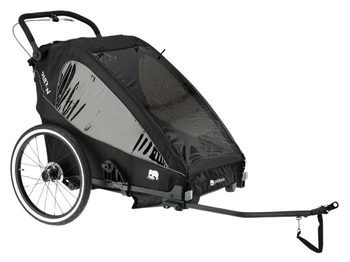De DERYAN Fietskar is speciaal ontwikkeld voor actieve ouders die graag samen met hun kind(eren) op avontuur gaan. Deze veelzijdige 3-in-1 oplossing combineert een fietskar, hardloopkinderwagen en tweepersoons kinderwagen in één robuust en comfortabel ontwerp.