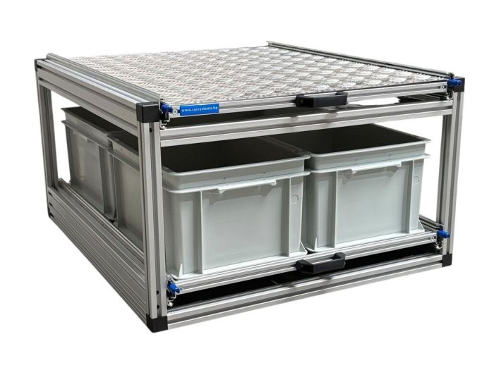 Dubbel alu schuifframe met 3 bakken en alu topplaat - 80 x 60 cm