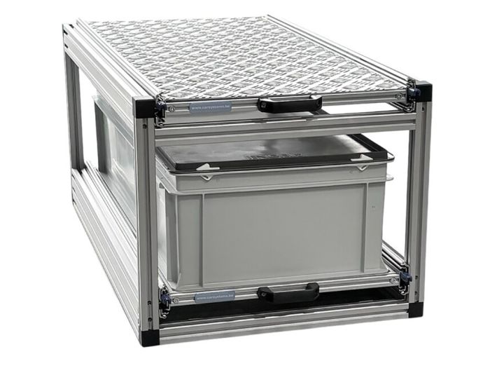 Dubbel schuifframe met 2 gesloten bakken en alu plaat - 90x40cm