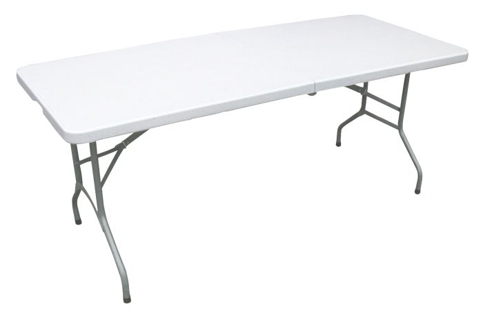 Inklapbare tafel – geschikt voor 8 personen. Op zoek naar een kunststof vouwtafel die je zowel binnen als buiten kunt gebruiken? Deze kampeertafel in het wit is ideaal voor buiten, op de camping of voor het creëren van extra (zit)ruimte op feestjes. De camping tafel is 180 cm lang, 74 cm breed en 72 cm hoog. Opgeklapt is de tafel slechts 90 x 74 x 9 cm en dus heel compact op te bergen. Daarnaast heeft de inklapbare tafel een handvat zodat je hem gemakkelijk mee kunt nemen.