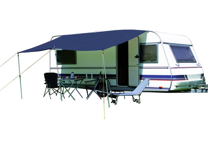 Vervaardigd van een stevig en slijtvast polyester en voorzien van een 7 mm pees voor de bevestiging aan de caravan. De luifel wordt incl stokkenset geleverd. Zeer snel een eenvoudig op te zetten!