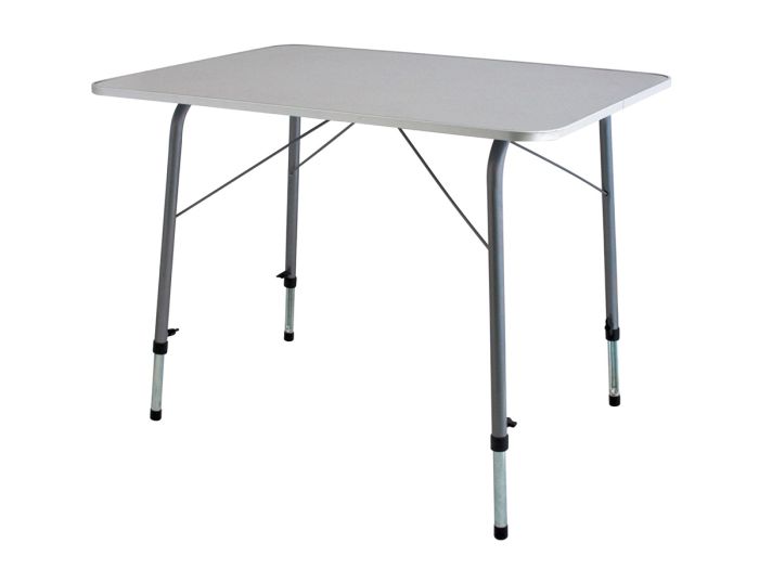 Praktische campingtafel met verstelbare poten en leverbaar in 3 verschillende afmetingen.