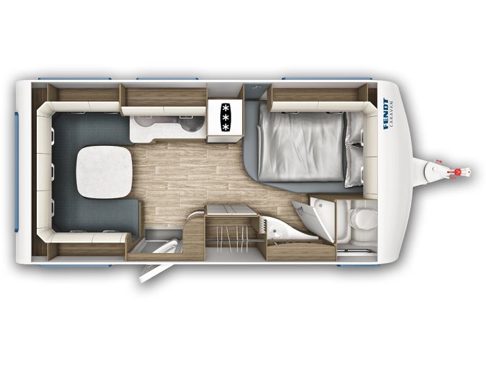 Middenkeuken, Slaapbank, Vast bed, Frans bed, Hoek toilet, Kledingkast, Rondzit