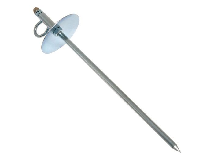 Een verzinkte grondpen van Flamingo met een lengte van 38 cm om in de grond te slaan.