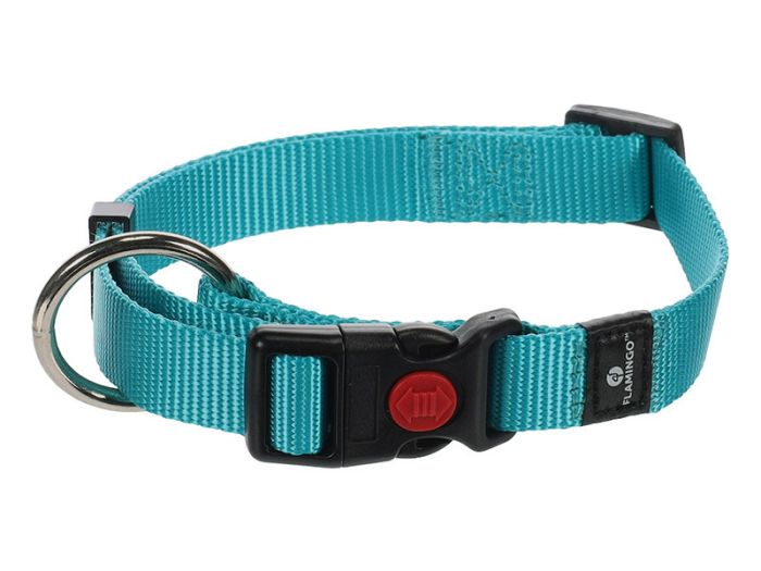 Met de Flamingo Ziggi Turquoise halsband - L geef je je trouwe viervoeter een stijlvolle en comfortabele look.