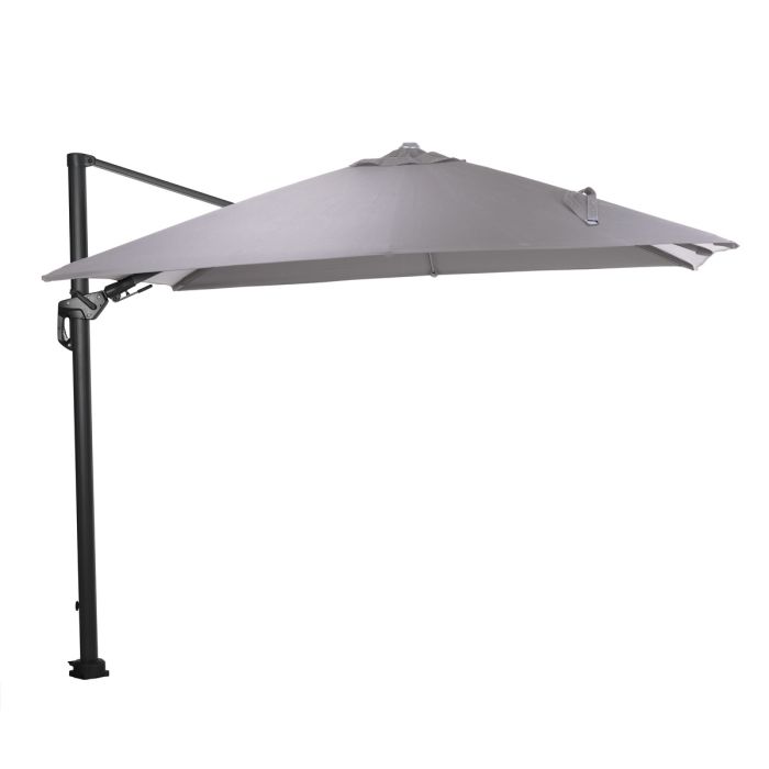 De Hawaii parasol is gemaakt van hoogwaardige kwaliteit materialen. De parasol beschikt over een 250 grams polyester doek wat zorgt voor bescherming tegen de zon. Verkleuring van het doek door de zon is na verloop van tijd niet tegen te gaan. Bovendien is het doek voorzien van een brandwerende PA-coating en een windvanger, zodat de wind goed weg kan als deze onder de parasol komt. Het parasoldoek is spatwaterdicht. Het dikke aluminium frame is voorzien van een hoogwaardige kwaliteit poeder coating. Deze coating is dusdanig sterk dat het kras- en stootvast is. De Hawaii parasol hoef je in principe niet te verplaatsen, want vanuit één positie creëer je schaduw waar deze nodig is. De Hawaii parasol van Garden Impressions zet je gemakkelijk schuin, door middel van het handvat schuif je het doek in verschillende standen schuin tot bijna 90 graden. Daarnaast kun je hem ook nog eens horizontaal verstellen. Bovendien kun je de Hawaii parasol ook nog eens 360 graden rond draaien. Na gebruik kun je gebruik maken van een Hawaii parasolhoes welke los aangeschaft kan worden, hierdoor kun je de parasol tijdens zonnige dagen buiten laten staan. Bij slecht weer til je deze zweef parasol gemakkelijk van de voet en berg je deze op in de schuur. Bij de Hawaii parasol zijn verschillende voeten verkrijgbaar om de parasol stevig in de tuin te plaatsen. Je kunt kiezen uit een kruisvoet, grondanker of een luxe granieten voet met wielen. Voor deze grote Hawaii parasol kun je het beste een Hawaii voet aanschaffen van minimaal 90 kg. Wanneer er meer wind staat op het terras dan is een voet van 120 kg beter geschikt. De totale hoogte van deze parasol is: 250 cm, de doorloop hoogte is 205 cm. De afmetingen van het zand kleurige doek zijn: L 300 x B 300 cm.