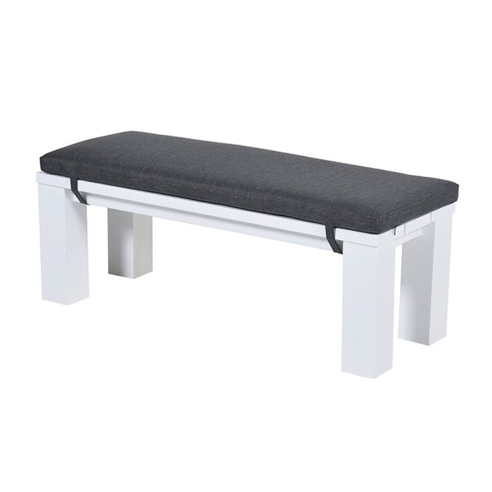 De Plaza tuinbank biedt extra zitplekken bij de Plaza loungeset. Het is een praktische, lichtgewicht tuinbank die je gemakkelijk in de tuin kan verplaatsen. De Plaza collectie van kwaliteitsmerk Garden Impressions kenmerkt zich door zijn strakke lounge meubelen. De tuinbank is volledig gemaakt van aluminium met een stevige coating. De tuinbank is vervaardigd uit een onderhoudsvrij en weerbestendig aluminium frame met een stevige poedercoating. Deze laag zorgt ervoor dat het frame kras en stootvast is. De Plaza bank dient nog gemonteerd te worden. De poten moeten op een eenvoudig manier onder het frame worden gemonteerd. Het echte genieten kan daarna beginnen! Het meegeleverde kussen is gemaakt van hoogwaardig kwaliteit polyester. Het kussen is voorzien van een rits waardoor de hoes gemakkelijk met de hand kunnen worden gewassen. Het kussen is niet waterbestendig en kan na gebruik worden opgeborgen in de schuur of kussenbox. Wel is het kussen voorzien van een waterafstotende coating. Dit is vooral erg praktisch als er bijvoorbeeld op het kussen wordt gemorst met drinken. Je veegt het vocht er namelijk gemakkelijk weer af. De Plaza loungeset uitbreiden? De Plaza serie heeft een groot assortiment en is volledig uit te breiden naar wens. De gehele Plaza serie van kwaliteitsmerk Garden Impressions bestaat uit; een 3-zits bank, hoek bank, midden element, poof, lounge tafel, lounge fauteuil en een lounge dining tafel. De Plaza serie is leverbaar met een witte of donker grijze coating. De afmeting van de lounge dining tafel is: B 115,5 x D 43 x H 40 cm. Gemaakt van aluminium met een poedercoating in de kleur wit.
