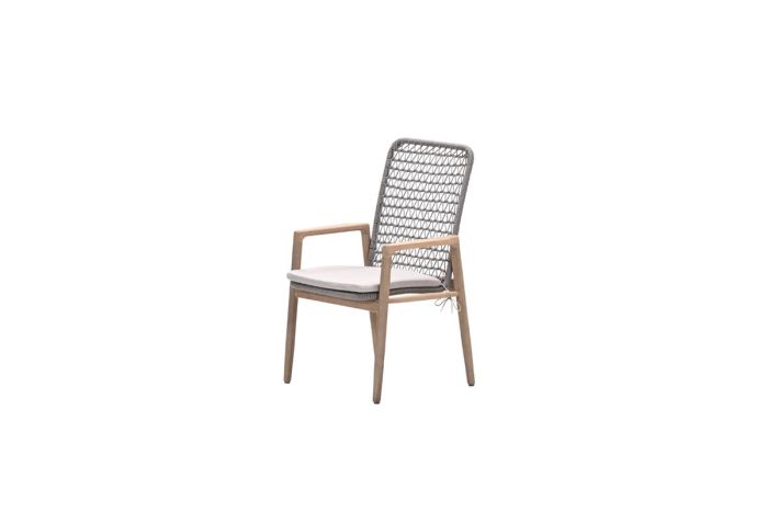 De rugleuningen van de Skala dining stoel zijn afgewerkt met een prachtige finishing touch: hieromheen is namelijk een bijpassend rope (touw) gevlochten. Dit rope is gemaakt van een weerbestendig, zeer kleurvast materiaal en geeft de Skala dining stoel zijn luxueuze uitstraling.
