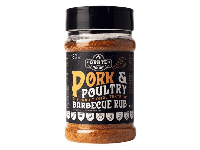 De Pork & Poultry barbecue rub van Grate Goods is verrukkelijk op varkensvlees en gevogelte!