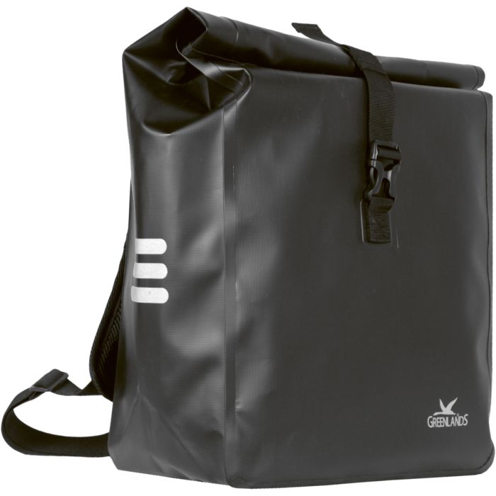 De Greenlands® waterproof fietstas is gemaakt van oersterk zeildoek. Deze 100% waterproof fietstas is verkrijgbaar in 23 liter. Door de gelaste naden in combinatie met de rolsluiting zijn deze tassen 100% waterdicht. De haken zijn geschikt voor bijna alle bagagedragers en laten zicht handig monteren. Daarnaast neem je de fietstas eenvoudig mee ( winkelen) met de bijgeleverde afneembare schouderband. De fietstas is voorzien van reflecterende elementen zorgt hiervoor dat men beter zichtbaar is in het verkeer tijdens de donkere dagen. Deze fietstas is ook een rugzak.