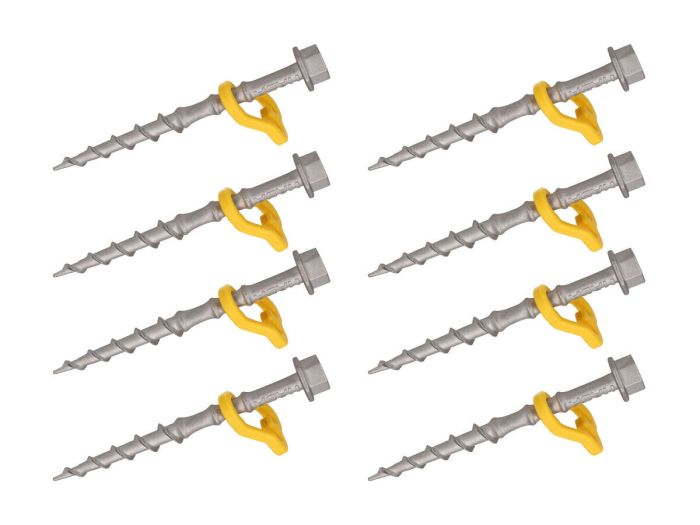 De schroefharingen draai je in de grond met de hand, met de boormachine of met de meegeleverde ratel. De schroefharingen zijn geschikt voor aarde, klei- en grasbodems. Door de meegeleverde gele hoogte-clips hoef je de haring ook niet volledig de grond in te draaien.