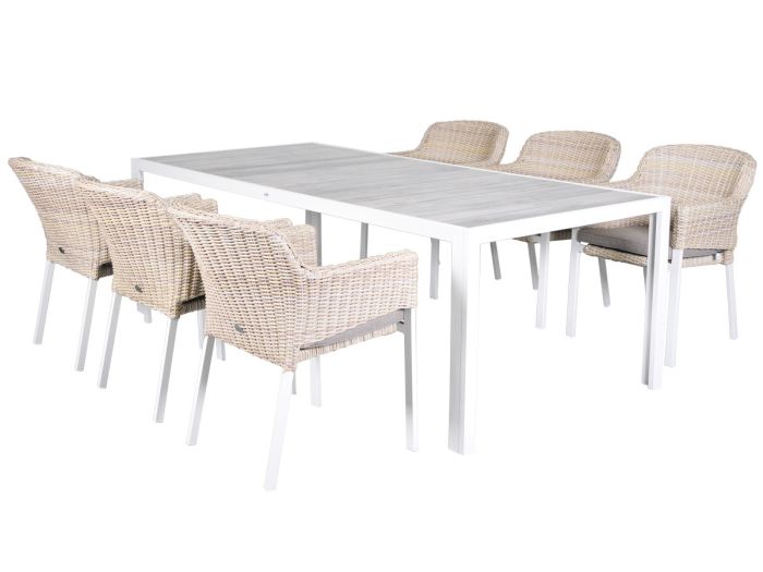 De Hartman Cairo dining Tanger 228 white is een 7-delige diningset bestaande uit een de Tanger 228 tafel en 6 Cairo dining stoelen.
