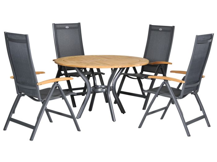 De Hartman Genua South Wales 120 diningset is een mooie combinatie tussen aluminium en teakhout.