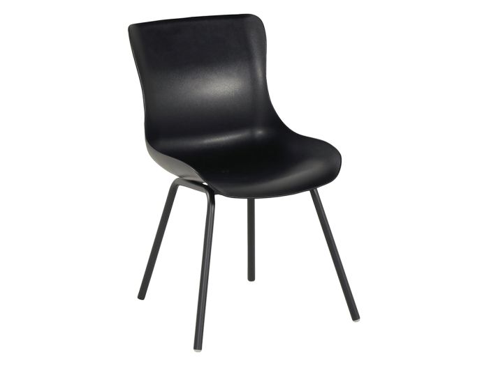 De stoel heeft een rond aluminium frame met daarop een kuip zonder armleuningen van hoogwaardige kwaliteit kunststof. Beide materialen zijn onderhoudsarm, duurzaam, licht van gewicht en 100% recyclebaar!