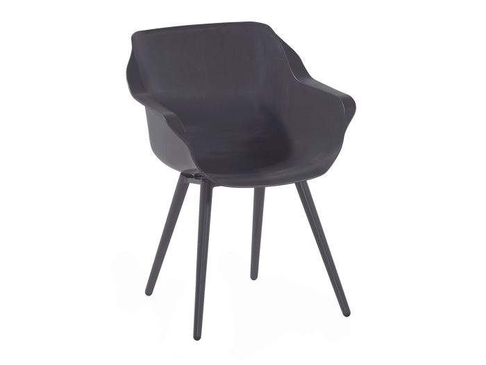 De kuip van de Sophie Studio Armchair is vervaardigd uit hoogwaardige kwaliteit kunststof en kenmerkt zich door haar brede armleggers. De kuip wordt geproduceerd in Nederland. Het onderstel bestaat uit aluminium en heeft een moderne conische vormgeving.