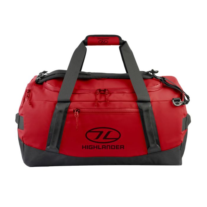 De Highlander sporttas Hauler Duffel - 45 liter is een ruime, praktische en stevige sporttas gemaakt van zeer duurzaam 500D Tarpaulin, een must-have voor elk avontuur. Het gebruikte materiaal is zwaar zeildoek en stevig bandmateriaal waardoor de tas gemakkelijk tegen een stootje kan bij het reizen.