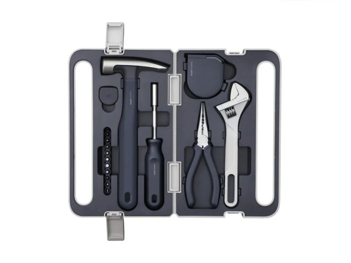 - Inclusief hamer, tang, schroevendraaiers en meetlint