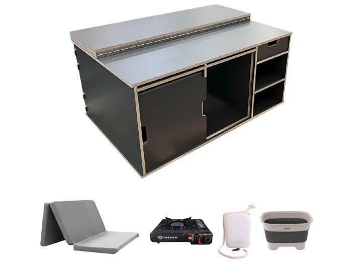 -Inbegrepen accessoires: Voor een complete ervaring hebben we essentiële accessoires meegeleverd, zoals een draagbare keuken, watertank (20 liter), gootsteen en matras. Alles wat je nodig hebt, vind je in de kit, waardoor je tijd en geld bespaart.