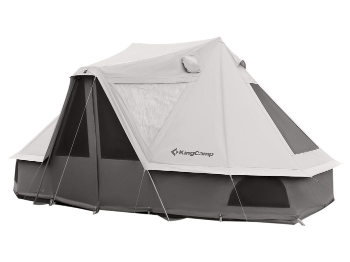 KingCamp presenteert de Khan Villa, een luxe groepstent die een speciale glamping sfeer biedt met zijn klassieke ontwerp. Ondanks zijn grootte kan hij snel worden opgezet en ruimtebesparend worden opgeborgen. De verschillende opzetmogelijkheden bieden maximale flexibiliteit. Vooral de opstelling met zijwanden van gaas biedt een unieke en comfortabele optie op warme dagen en combineert optimale ventilatie met bescherming tegen insecten. Dankzij de ingebouwde dakventilatie is een aangenaam binnenklimaat met toevoer van frisse lucht gegarandeerd.