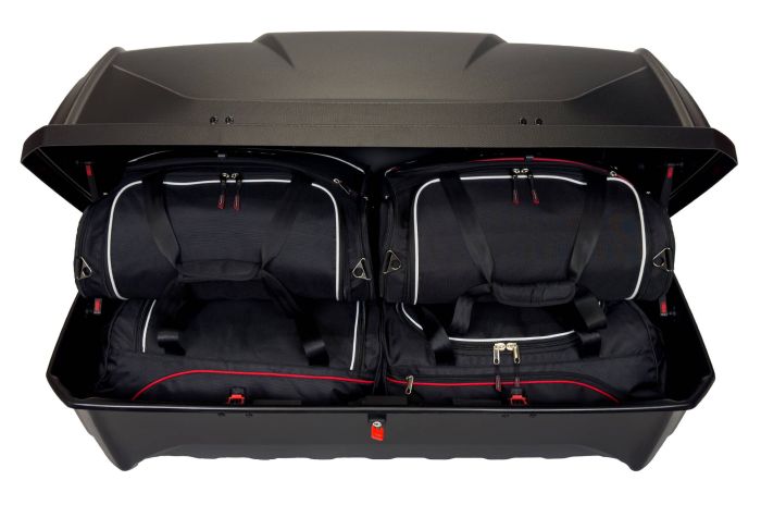 Maximaliseer de ruimte van je GP bagagebox met de op maat gemaakte KJUST tassenset. De vier tassen benutten de ruimte optimaal, zorgen voor efficiënte verpakking en veilig transport. Met deze tassenset hoef je je nooit meer zorgen te maken om de dakkoffer.