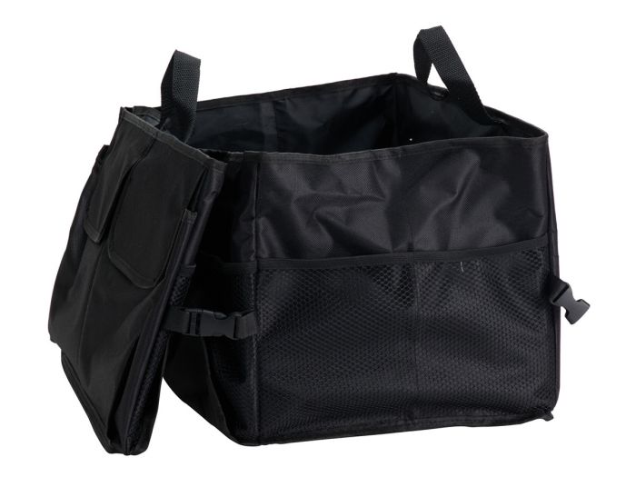 Met de kofferbaktas – 56 x 39 x 26 cm houd je je kofferbak overzichtelijk en netjes. Deze stevige opbergmand is ideaal voor het vervoeren en organiseren van boodschappen, auto-accessoires, sportspullen of andere losse items die anders door de kofferbak schuiven.