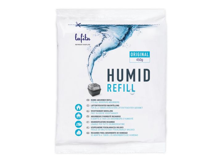 Lafita vochtvangers worden in Nederland geproduceerd en absorberen overtollig vocht in de ruimte. Eén navulling gaat ongeveer 1-3 maanden mee en past in iedere vochtvanger. Verpakking van 42 stuks.