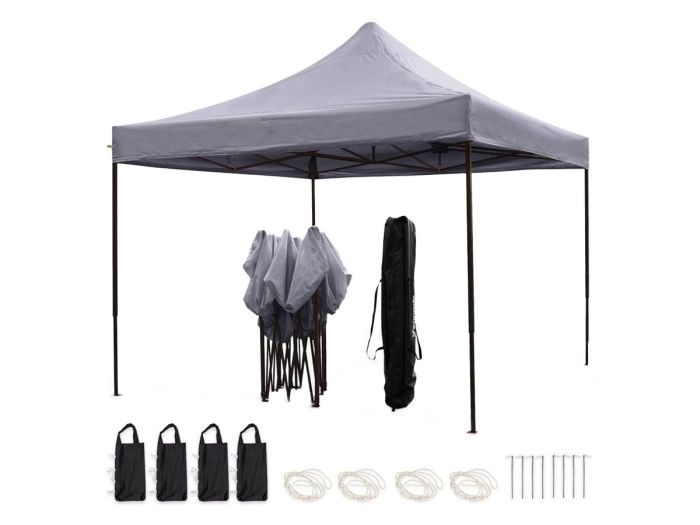 Met de partytent worden extra accessoires meegeleverd om de tent te zekeren aan de grond. 4 zandzakken worden meegeleverd om het geheel te verzwaren. De zandzakken kun je zelf tot aan 10 kg vullen. Daarnaast worden er 8 haringen en 4 scheerlijnen meegeleverd om het tentdoek strak te trekken. Omdat de partytent niet bestand is tegen hevige wind wordt er ook een handige draagtas meegeleverd om de partytent in op te bergen.