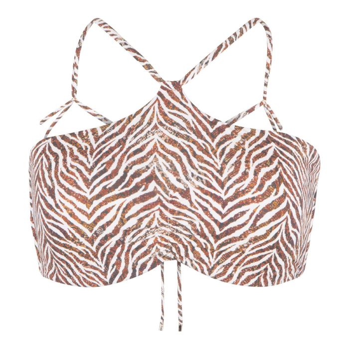 Crazy wild & fun - Deze serie heeft een sexy uitstraling met een unieke zebra print. Deze bandeau bikini top is een uniek model en heeft een verstelbaar touwtjes waarmee je zelf de prettige verhouding kunt zoeken met de nek en rug.