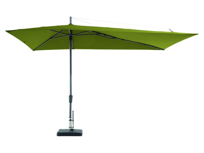 Zit de parasolvoet altijd op de verkeerde plek waardoor je niet op de juiste plek schaduw kunt creëren? Dan is de Asymetriq Sideway waarschijnlijk een goede oplossing. Bij deze rechthoekige parasol zit de voet aan de zijkant waardoor hij perfect gebruikt kan worden boven een tafel. De afmeting van de parasol is 360 x 220 cm.