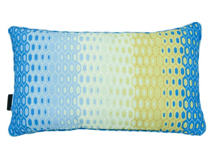 De Madison Suzy azur 50 x 30 is een lendekussen met een grafische print in een blauwe kleur.