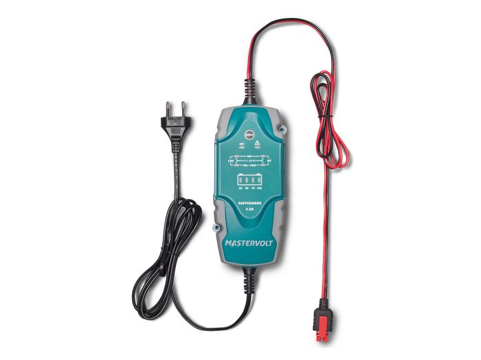 De Mastervolt EasyCharge Portable 4.3A is een waterdichte handzame acculader. De EasyCharge acculaders zijn efficiënt, makkelijk in het gebruik en geschikt voor zware omstandigheden. Ze zijn uitgebreid getest op bestendigheid tegen zoutinwerking, schokken en trillingen.