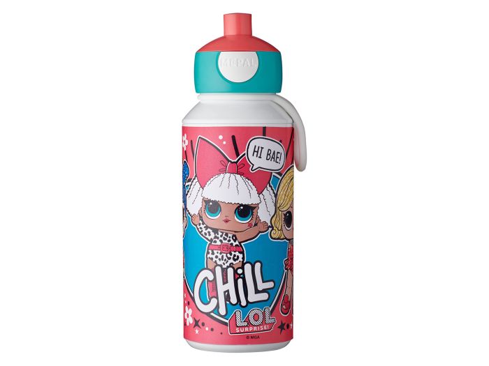 De Mepal Campus pop-up - L.O.L. Surprise is uitgevoerd met een leuke afbeelding en heeft een inhoud van 400 ml. Door een druk op de knop springt de tuit van de drinkfles open en door op de tuit de drukken sluit de fles weer. De drinkfles is voorzien van een handige klip waarmee de fles aan een riem of tas kan worden gehangen. Na gebruik mag de drinkfles gewoon in de vaatwasser.